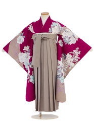 着物レンタル なごやか TOP> 女児七五三 > 女児袴(7歳8歳) F323 赤紫 花華×ベージュ袴