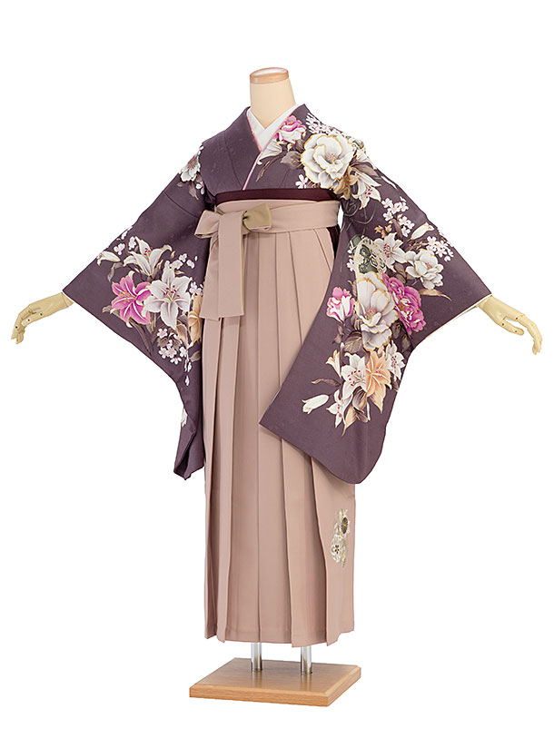 卒業式女性袴 1269 薄桜色 牡丹/ベージュ袴