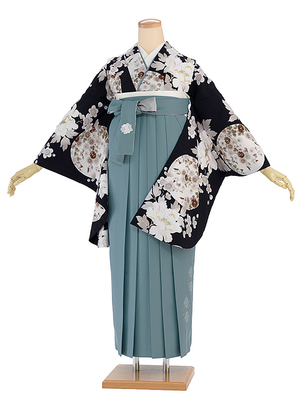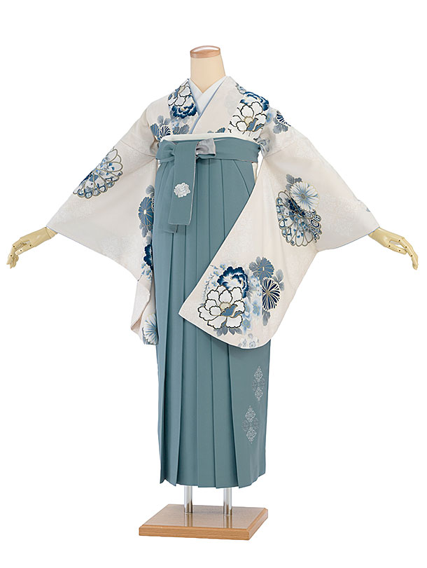 卒業式女性袴 1270 水色 牡丹/クリーム袴